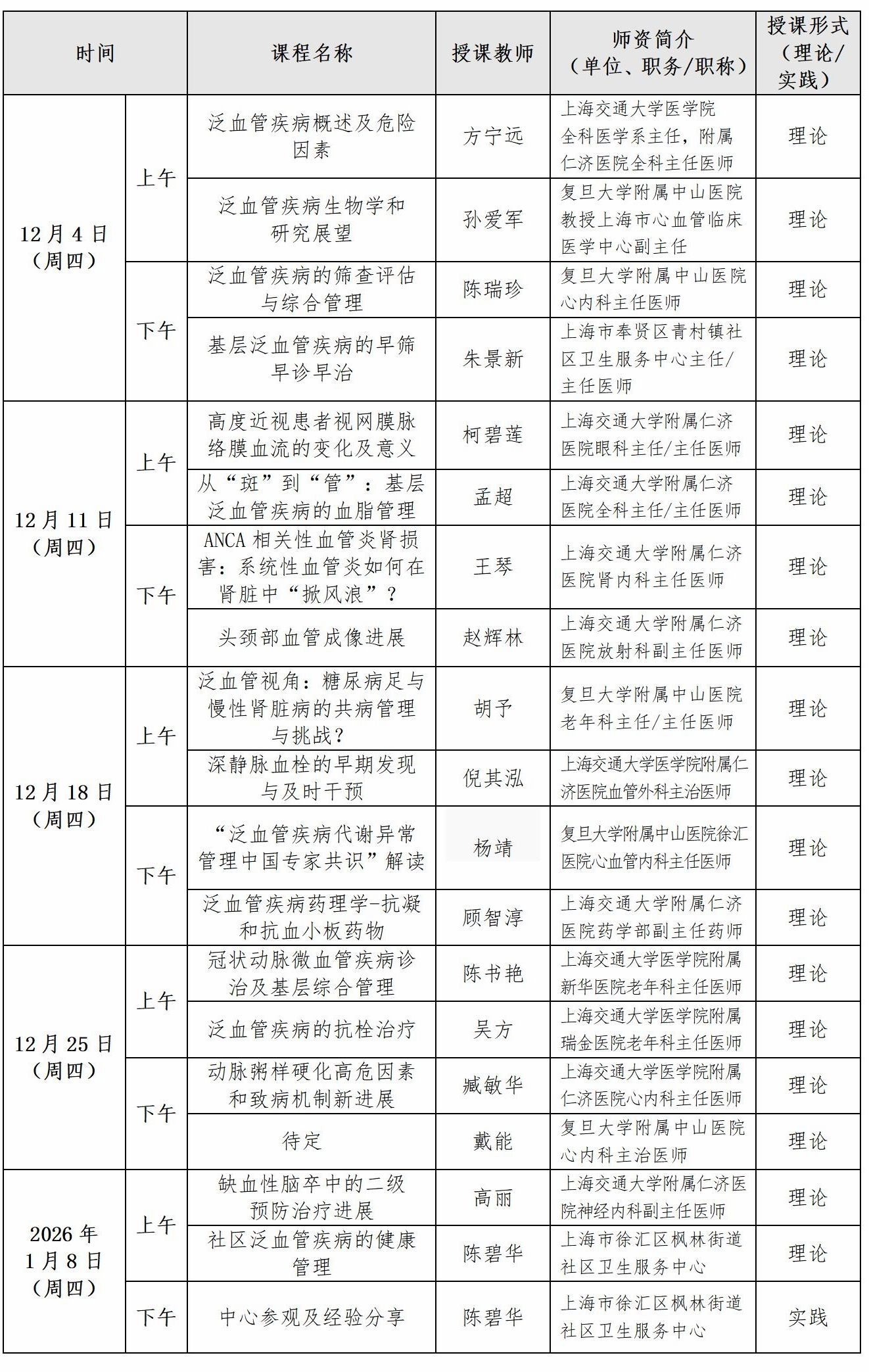为贯彻落实《进一步提升本市社区卫生服务能力的实施方案》(沪府办发〔2023〕7号)文件要求,上海市卫生健康委指导上海市全科医学教育培训中心制定了《社区全科医生职业能力提升培训建设方案》并复函,在同意整体方案的基础上,2024年上海市全科医学教育培训中心先期启动社区急需的老年失能、老年“三高共管”、慢性疼痛等6个培训项目。2025年,上海市全科医学教育培训中心紧扣国家卫生健康事业发展战略,结合社区卫生服务实际需求,针对性地开展包括“泛血管疾病基层防控培训班”等在内的10余个培训项目,系统推进社区全科医生职业能力提升培训工作,持续夯实基层医疗卫生服务人才基础。