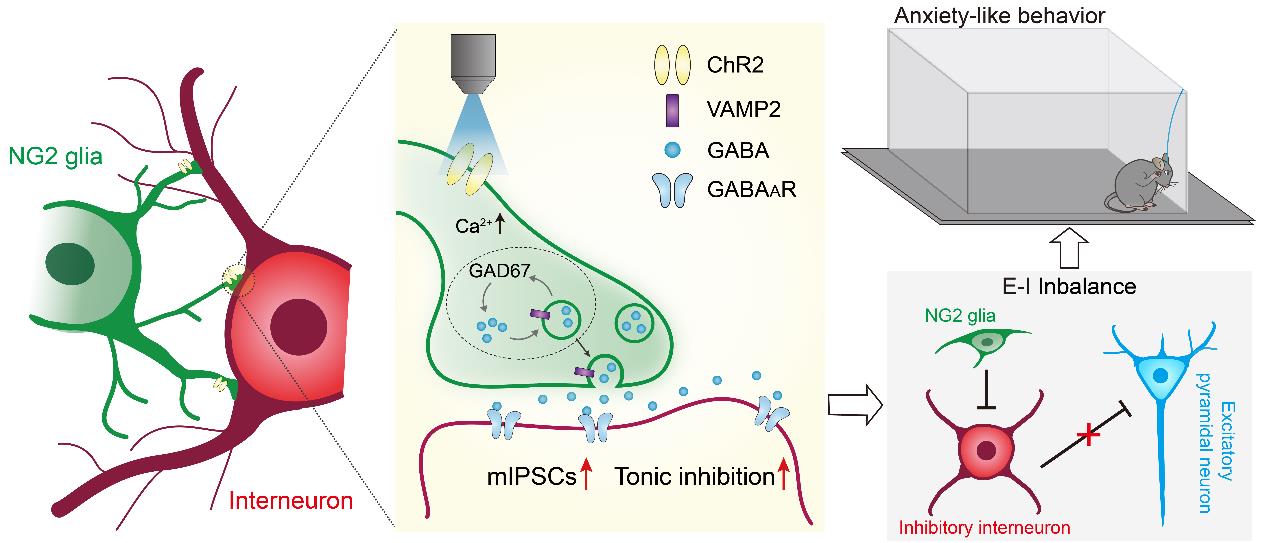 该项研究从分子、细胞、神经微环路及在体行为学分析等多维度揭示了NG2胶质细胞与神经元间交互作用的神经机制以及对维持神经网络正常功能的重要性,为临床上治疗焦虑相关疾病提供了新的思路和理论依据。