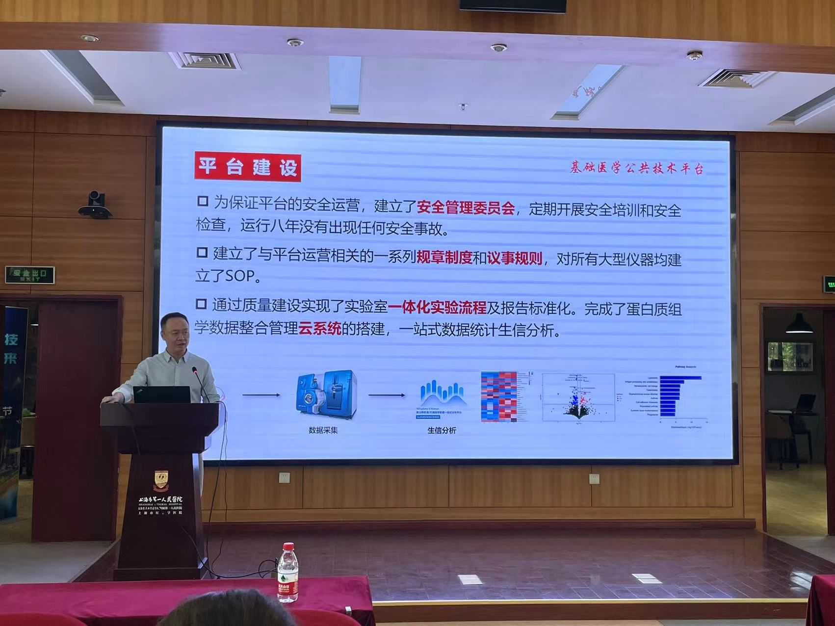 宣讲会由左勇和附属第一人民医院王义平研究员主持。左勇向参会嘉宾介绍了公共技术平台的发展历史、规模和近年服务医学院科研做出的贡献。接着,公共技术平台实验室主管们向参会嘉宾介绍了各个实验室的人员和设备情况,并重点介绍了实验室能提供的优质、尖端的技术服务和应用实例。在穿插的互动环节中,各位平台负责人认真回答了嘉宾的问题,全场进行了深入的交流和讨论,现场气氛活跃。