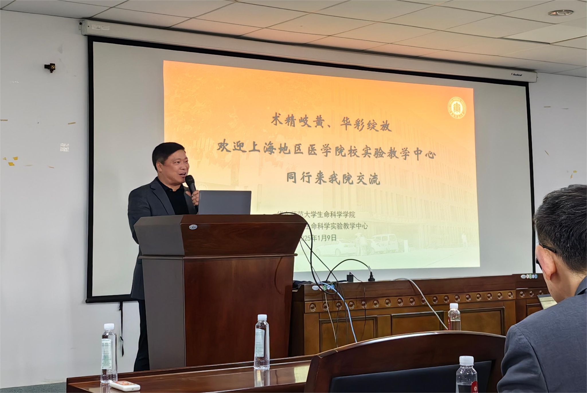 为进一步加强上海地区医学院校在实验教学领域的改革与发展,2025年1月9日下午,由上海地区医学院校实验教学中心联席会主办,华东师范大学生命科学实验教学中心承办,上海梦之路数字科技有限公司协办的“2025年上海地区医学院校实验教学中心联席会”在华东师范大学生命科学学院生科楼534报告厅举办。来自上海交通大学医学院、复旦大学上海医学院、华东师范大学、同济大学、海军军医大学、上海中医药大学、上海健康医学院、上海杉达学院、上海城建职业学院、上海建筑工程学校等多所医学院校实验教学负责人、主管领导、骨干教师40余人齐聚一堂,交流医学实验教学的实践与经验,共同为基础医学实验教学的改革与发展建言献策。基础医学院教学办公室主任苏懿,基础医学实验教学中心主任戎伟芳等多位教师出席会议。