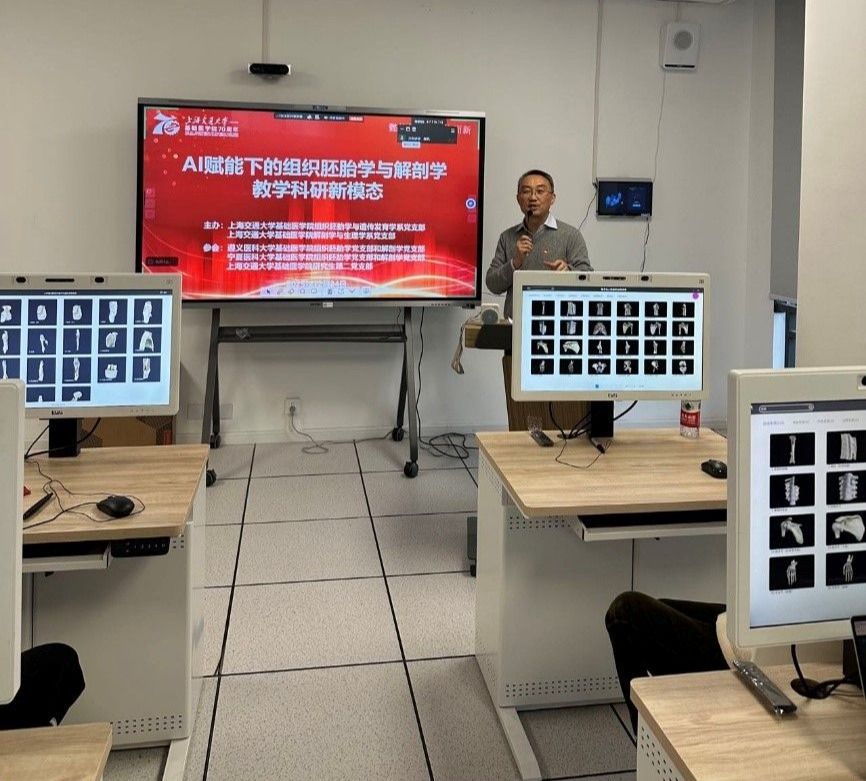 本次联合主题党日活动不仅是三校在党建引领下对“AI+医学教育”前沿课题的深入探索,更是响应国家人工智能发展战略、推动医学教育现代化转型的具体实践。活动充分展现了上海交通大学基础医学院在医学教育创新理念引领下,在“以新校区建设为契机推动内涵式发展”指引下,将人工智能技术与传统形态学教学科研深度融合的决心与成果。通过搭建东西部院校合作桥梁,为促进优质教育资源流动、共同培养适应新时代需求的卓越医学人才开辟了新路径,也为我国基础医学教育在人工智能时代的创新发展提供了有益范例。