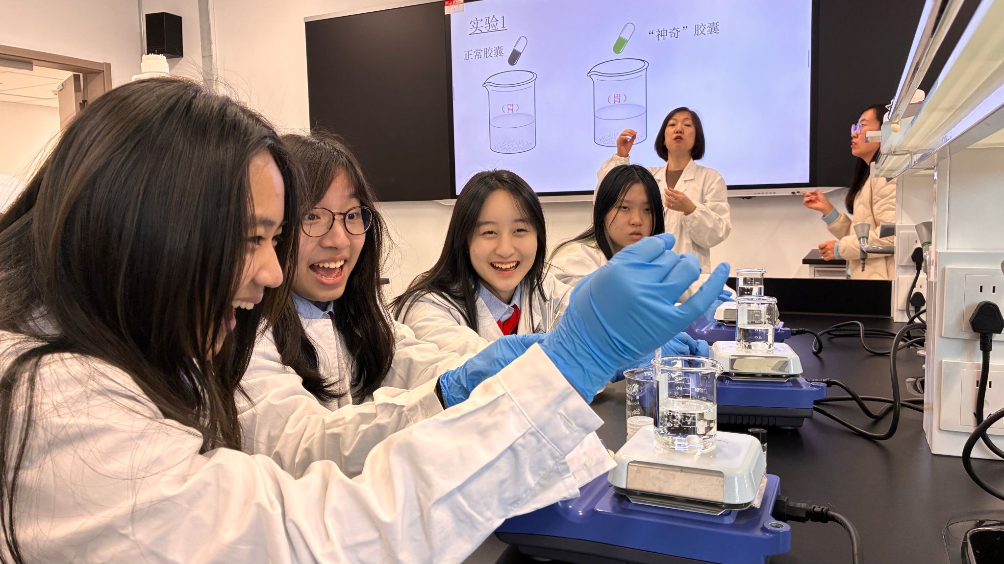 随后,同学们走进基础医学实验教学中心,在姚莉韵书记的带领下参与了“神奇的胶囊”药物科普实验。姚老师详细讲解了实验室规范、仪器设备使用方法及实验安全要点,并指导同学们模拟药物在消化道中的释放过程。装样、搅拌和观察,每一个环节都让同学们切身体验到科研的严谨与细致。