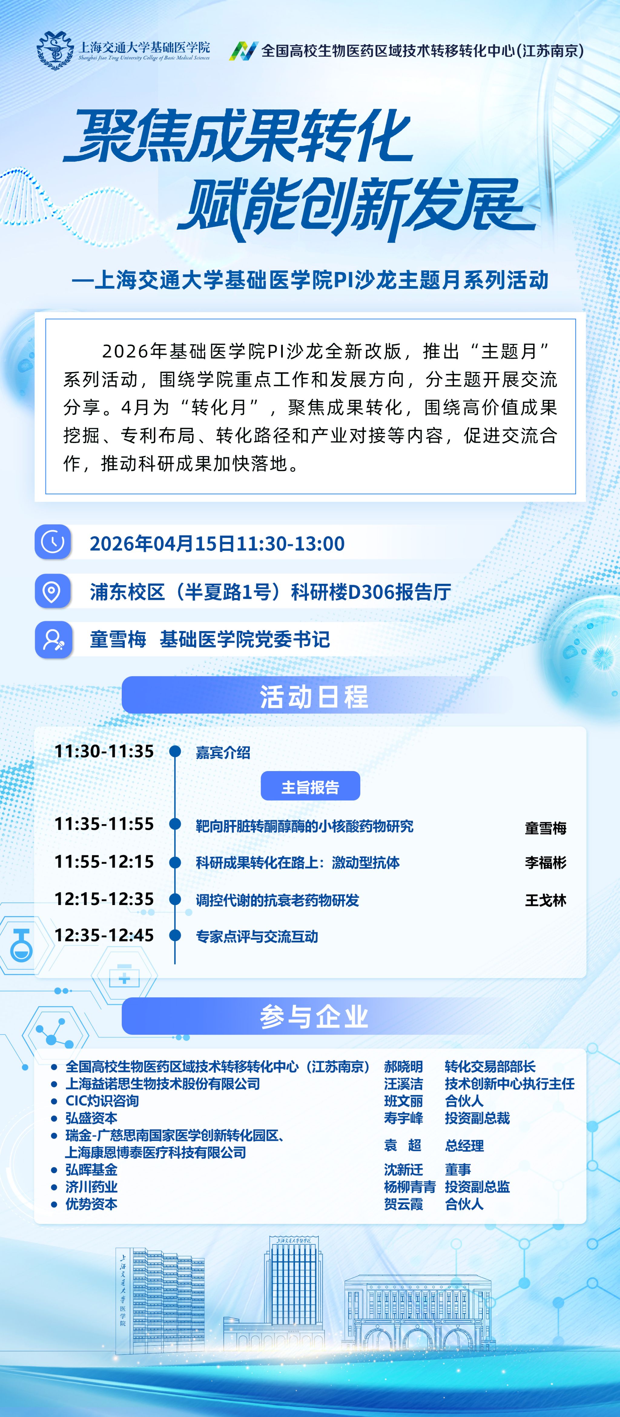 聚焦成果转化 赋能创新发展 ——上海交通大学基础医学院PI沙龙主题月系列活动