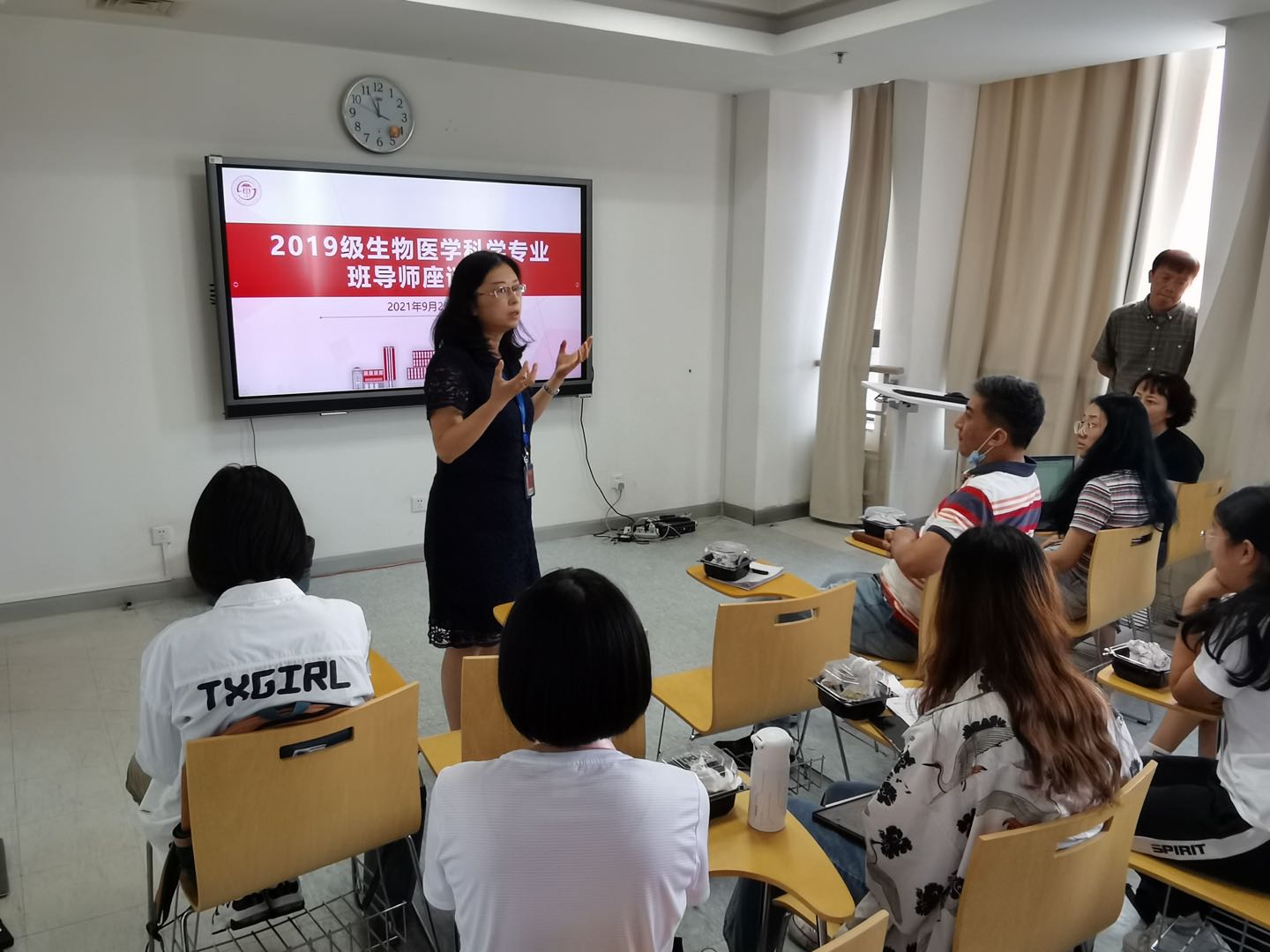为切实发挥班导师思想引领与专业导航作用,9月29日,2019级生物医学科学专业在西二教学楼举办首次班导师座谈会。基础医学院副院长王昊、2019级生医科班导师李兵、基础医学院教学办公室成员及辅导员顾佳静共同参会。