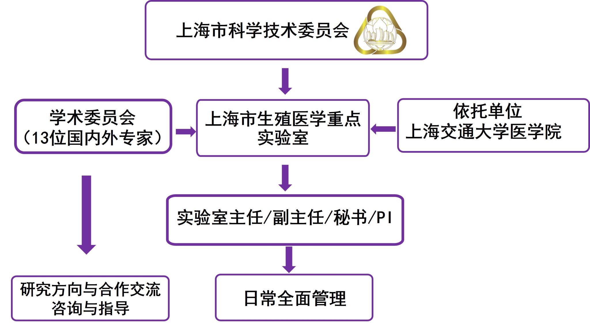 实验室由上海市科学技术委员会监管,依托上海交通大学医学院。实验室主任负责重点实验室的领导和管理。学术委员会由国内生殖生物学、生殖医学、干细胞生物学、妇产科学、发育与遗传学等学科的专家组成,对实验室的研究方向与合作交流进行指导。实验室主任与副主任、课题组长与实验室秘书参与实验室的日常全面管理,实验室重要事务经集体讨论再做决议。