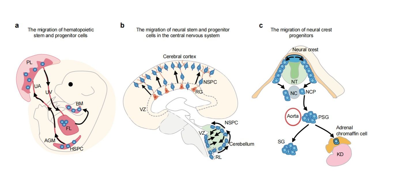 图1:造血和神经系统发育过程中干祖细胞的迁移