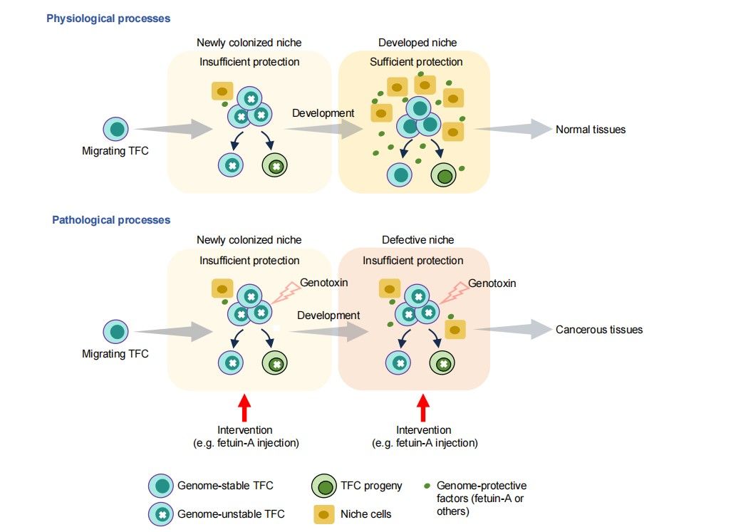该观点的提出,为理解儿童肿瘤高发系统的共同特征及其早期起源提供了新的理论坐标,也为未来识别发育易感窗口、解析“干祖细胞—微环境”保护机制、以及探索风险评估与预检预防策略提供了新的研究方向(图2)。