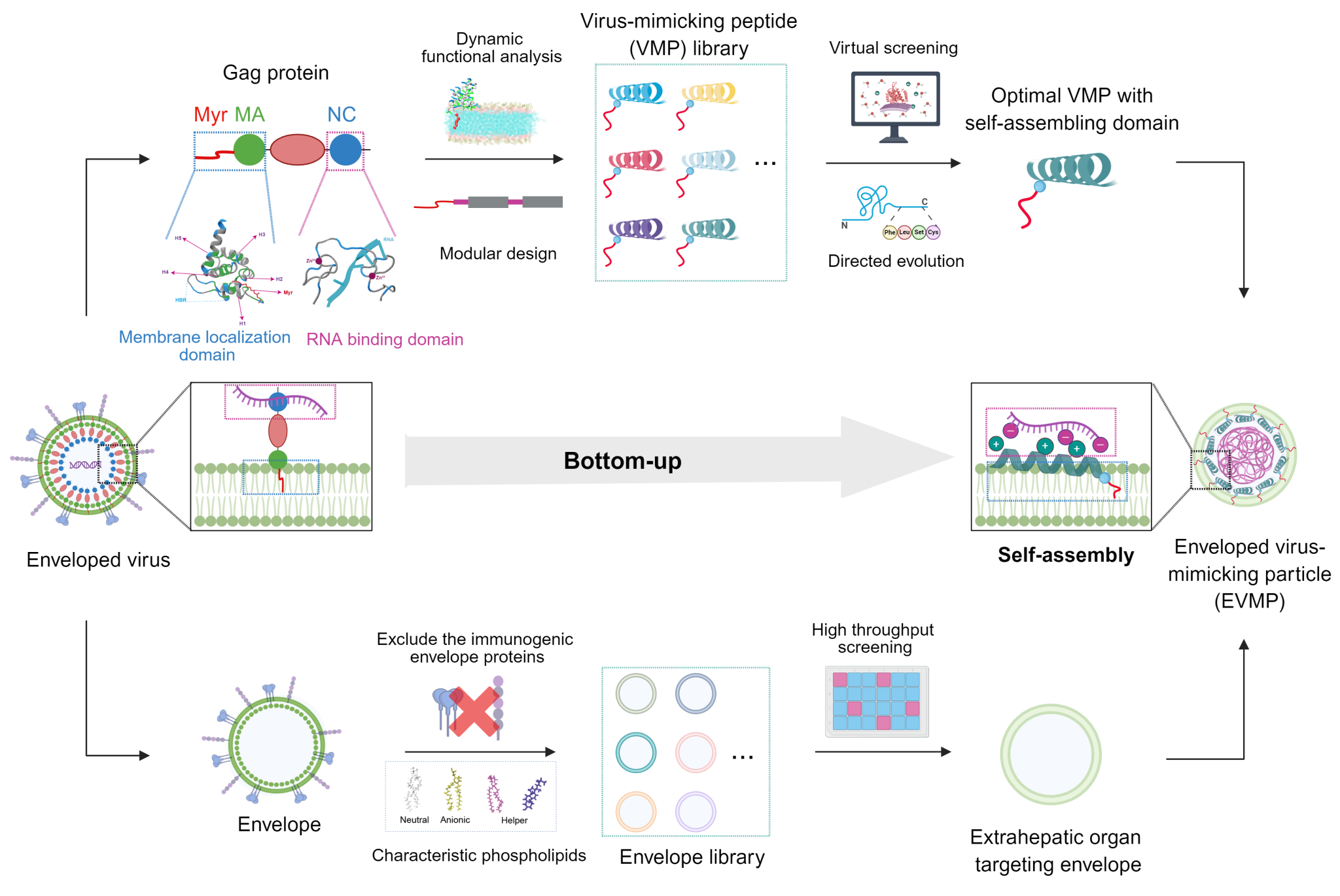 图1 包膜病毒模拟颗粒(EVMP)自下而上的构建策略