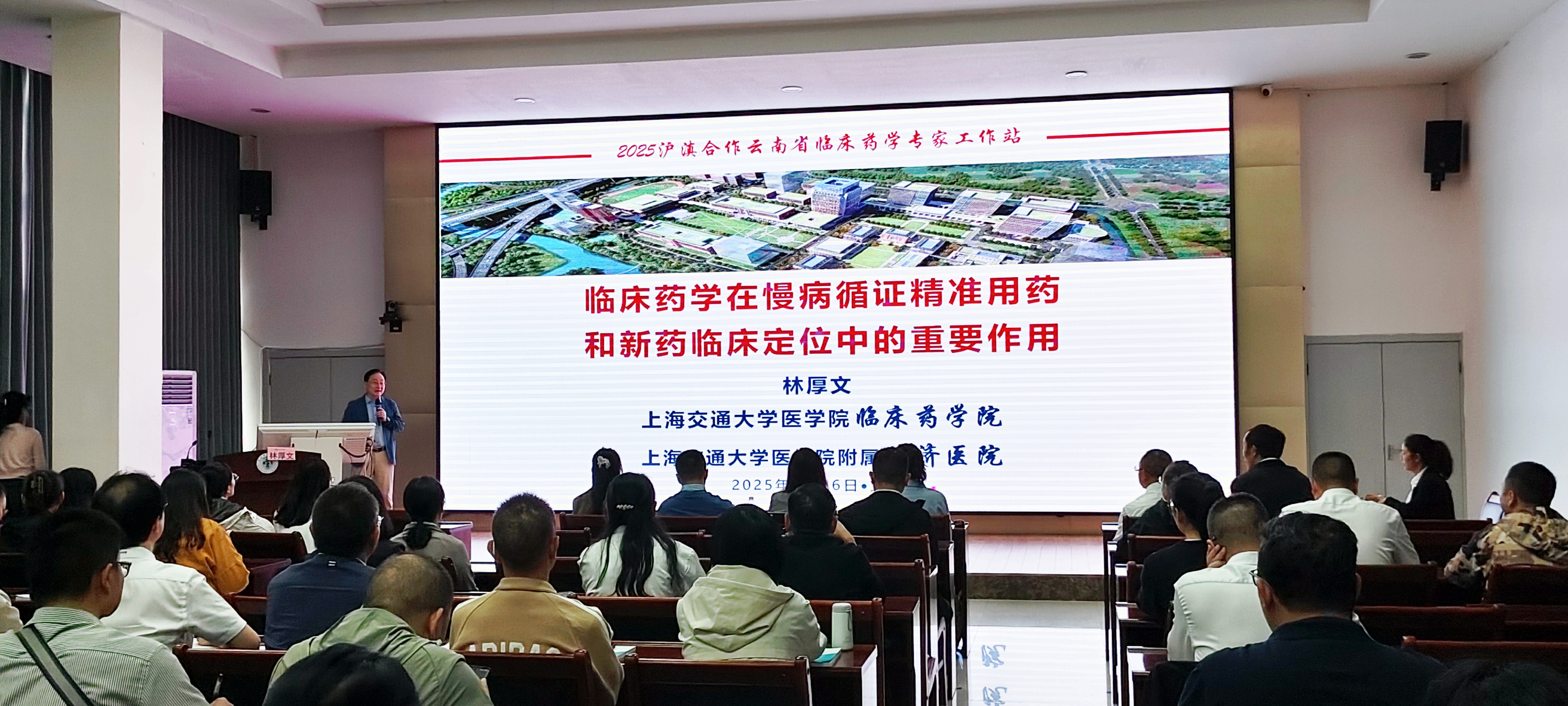 为深入贯彻落实党的二十大关于“推进健康中国建设”的战略部署要求,提升沪滇合作力度与深度,推进健康中国建设、保障人民群众安全有效用药贡献力量,2025年9月26日,上海交通大学医学院临床药学院院长林厚文教授带领团队赴云南省文山壮族苗族自治州文山市,参加在文山市人民医院举行的“云南省林厚文专家工作站”授牌仪式。