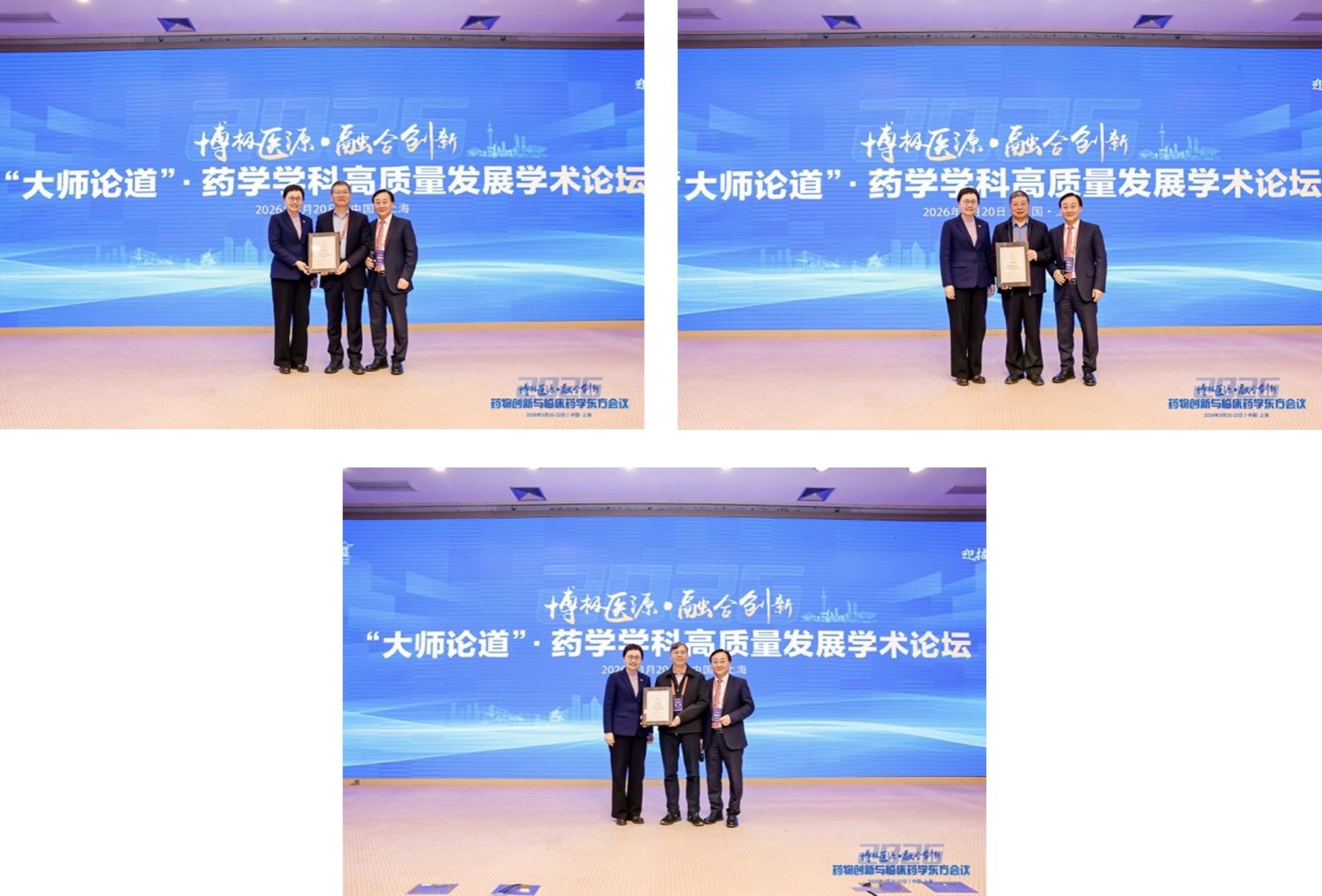 上海交通大学医学院党委书记张艳萍为马大为院士、常俊标院士、谢恬教授颁发感谢状