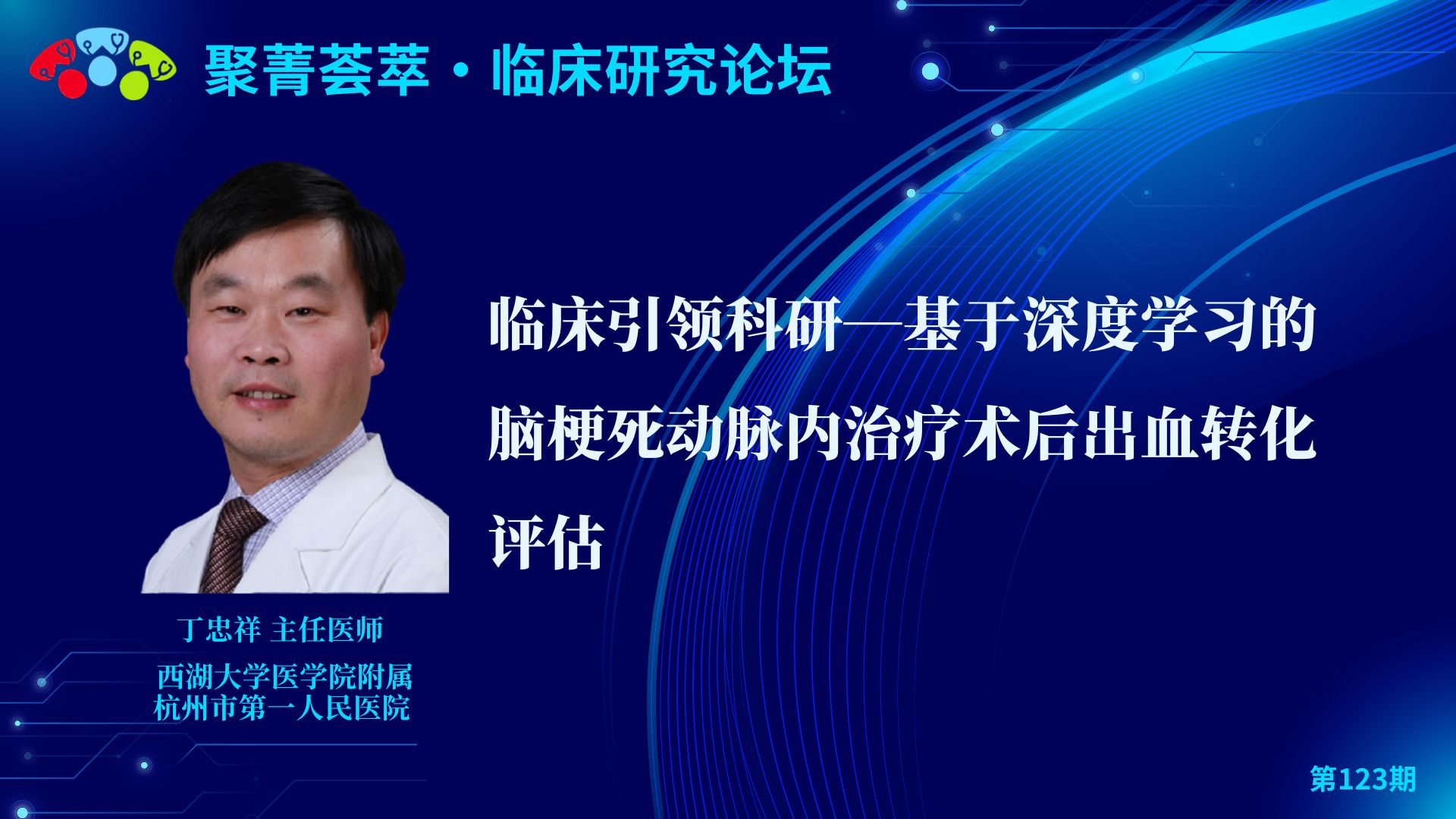 10月27日,丁忠祥主任将讲述基于深度学习的脑梗死动脉内治疗术后出血转化评估。