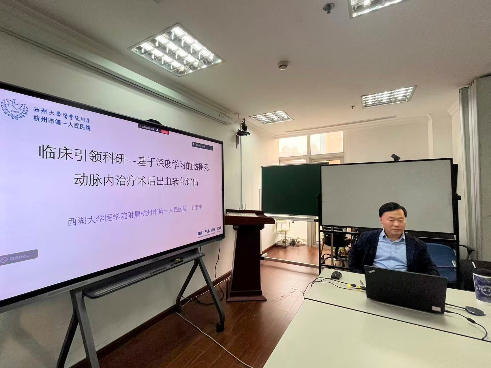 2025年10月27日,西湖大学医学院附属杭州市第一人民医院放射科主任医师丁忠祥应邀莅临上海交通大学医学院临床医学研究院并做题为“临床引领科研—基于深度学习的脑梗死动脉治疗术后出血转化评估”的报告。基于该临床问题,丁主任带领团队基于Transformer的生成对抗性网络(trans-GAN),从一组SECT图像中同时生成虚拟平扫去碘图像(VNC)和虚拟碘图(IOM)图像。