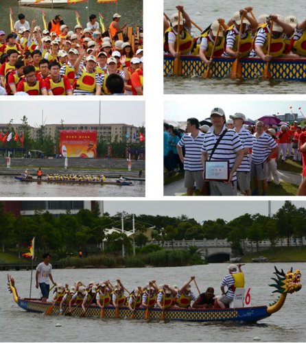 下午在通海湖上,35所高校财务系统组成27支代表队参与了龙舟赛的角逐,桨手们随着激昂有力的鼓点声船桨翻飞,刹那水面众舸争流,两岸助威呐喊声此起彼伏。在我处全体老师的共同努力下,我们不畏强手,表现出了强有力的凝聚力,最终在龙舟大赛获得了优胜奖。