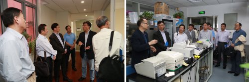 专家组首先在院办、财务处等相关部门负责人的陪同下实地考察了医学院人才特区建设项目—上海市免疫学研究所和解剖学和组织胚胎系,分别听取了苏冰教授和徐天乐教授的介绍。专家组一致表示我院高层次人才引进方面成果显著,主要表现在三方面,即引进的人才是国际一流的、实验室设备和设施是先进的、团队的工作机制是创新的,这使引进人才和团队拥有较好的自主创新能力。