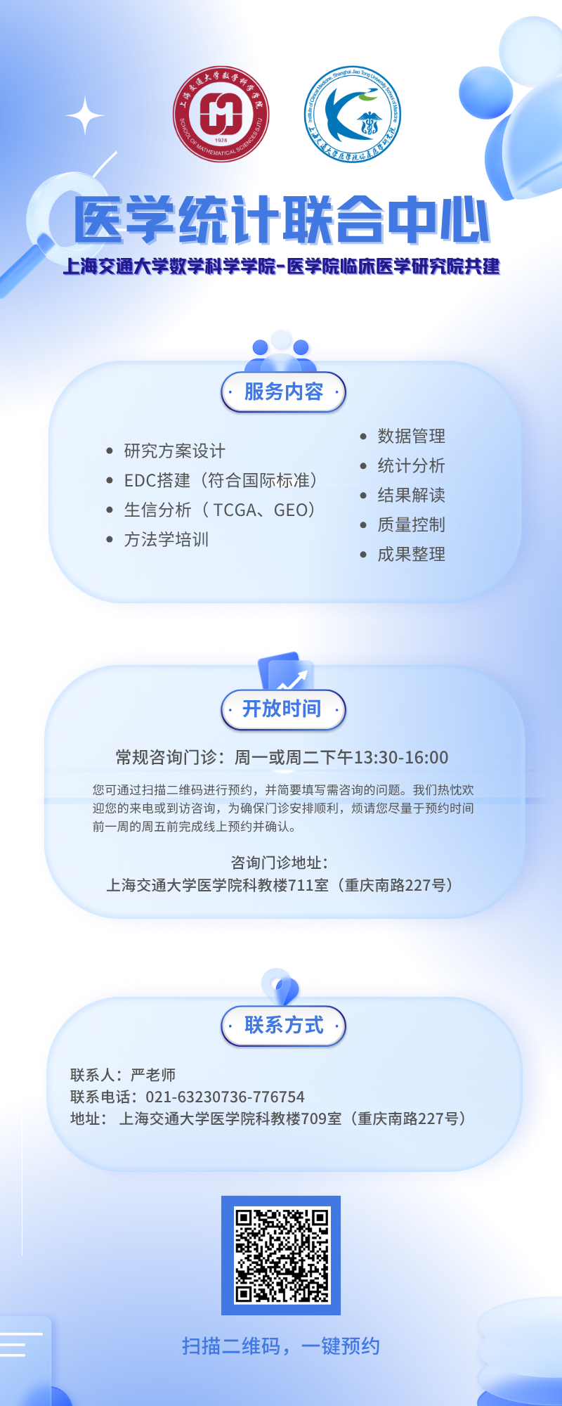 上海交通大学医学院临床医学研究院联合交大数学学院统计学专家共同开展的临床研究统计学咨询门诊将在2025年秋季学期继续进行,为您的临床研究保驾护航。
