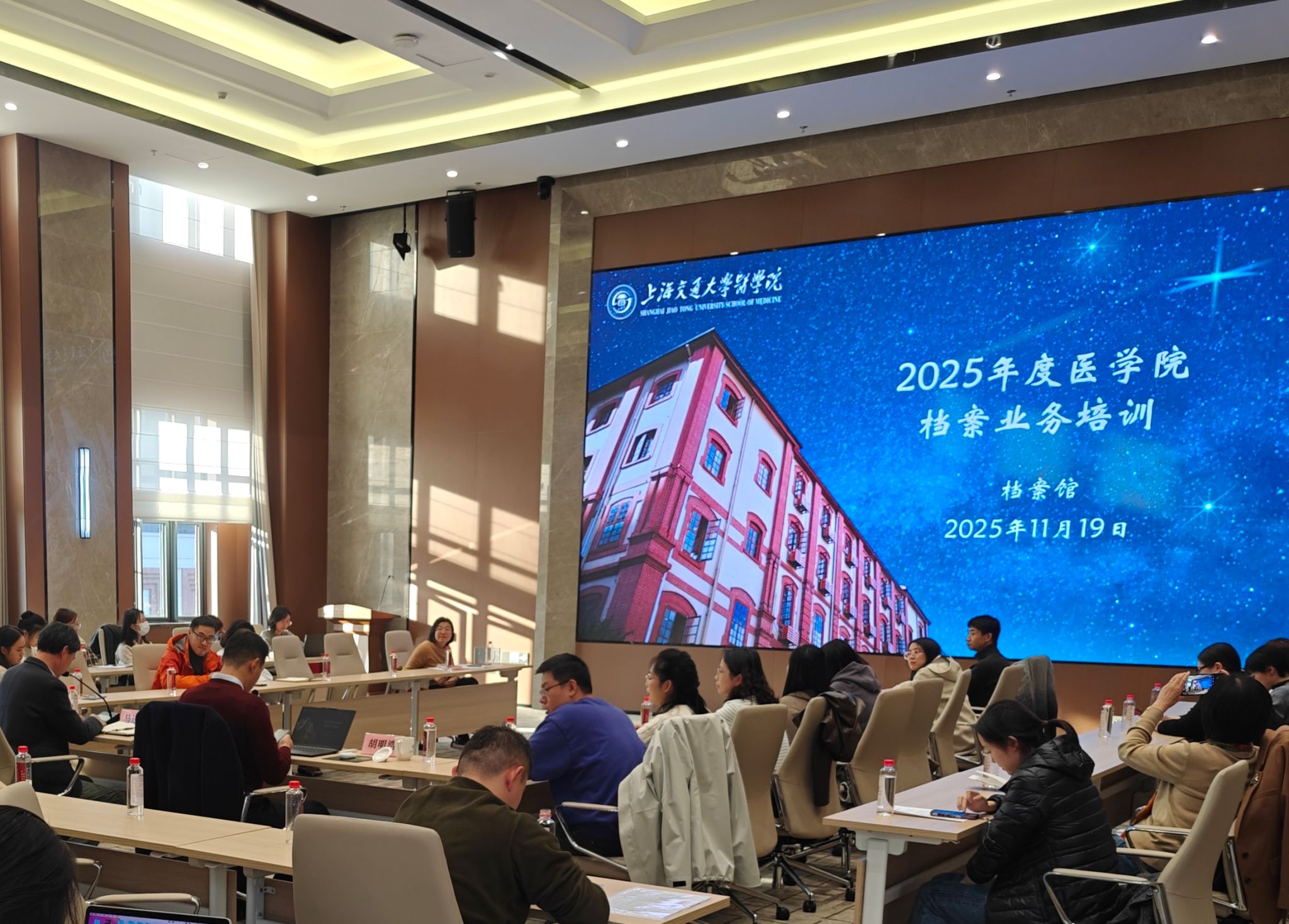 11月19日下午,上海交通大学医学院2025年度档案业务培训在彤程大讲堂辅楼三楼方形会议室召开。医学院各部处、二级学院专兼职档案员和附属医院专职档案干部近50人参加了会议。会议由医学院档案馆副馆长马进军主持。《电子档案管理办法》于2024年9月14日国家档案局令第22号公布,自2024年11月1日起施行。这是我国电子档案管理法规建设的重要成果,档案工作数字化转型的重要标志。本次培训邀请了上海市档案局科技信息化处副处长胡...