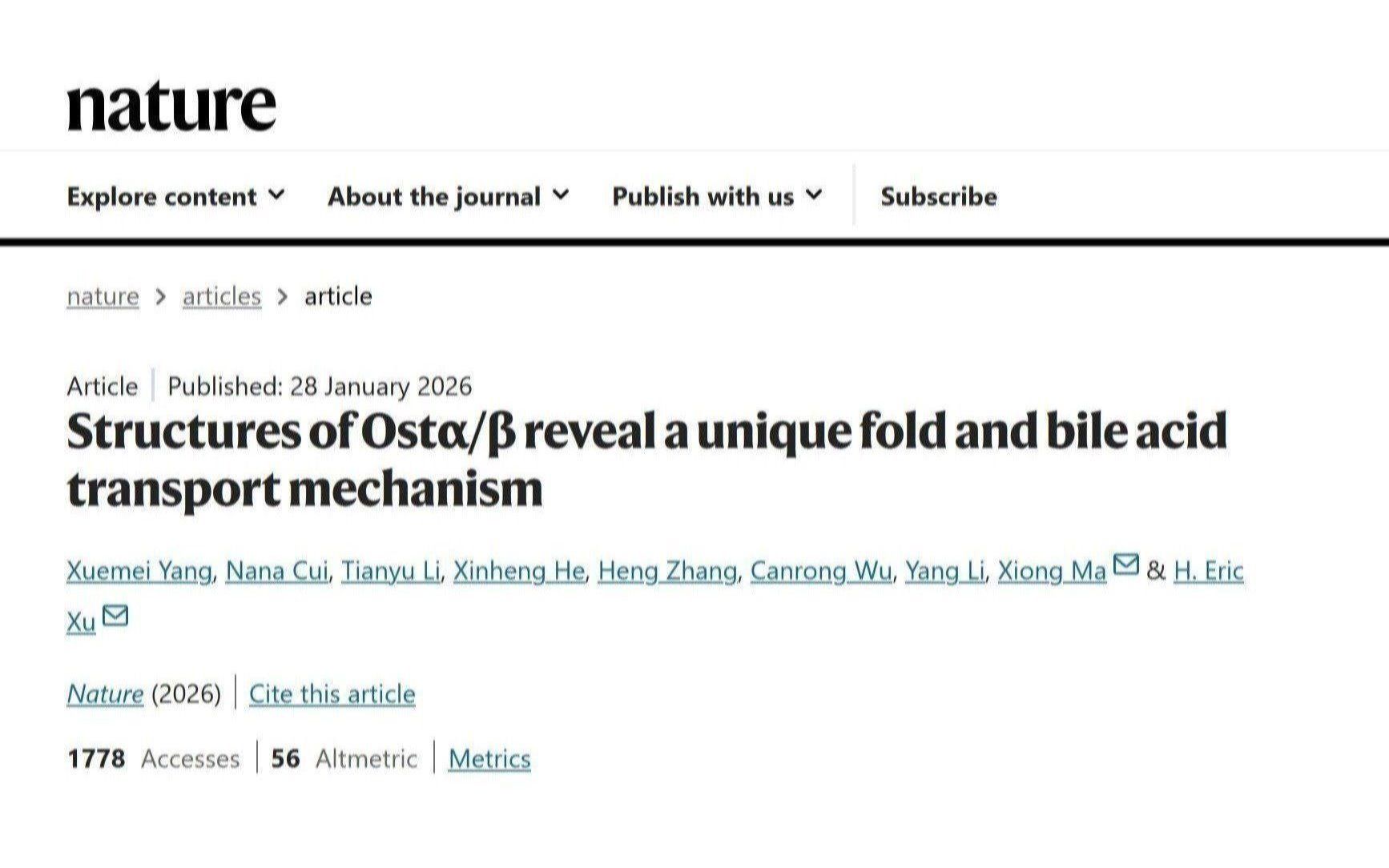 February 3, 2026On January 28, 2026 (local time), a research team led by Xu Huaqiang, researcher at the Center for Translational Medicine and Structural Biology, Ruijin Hospital, Shanghai Jiao Tong University School of Medicine, together with colleagues from the Shanghai Institute of Materia Medica, Chinese Academy of Sciences, published a research article entitled “Structures of Ostα–β reveal a unique fol... -