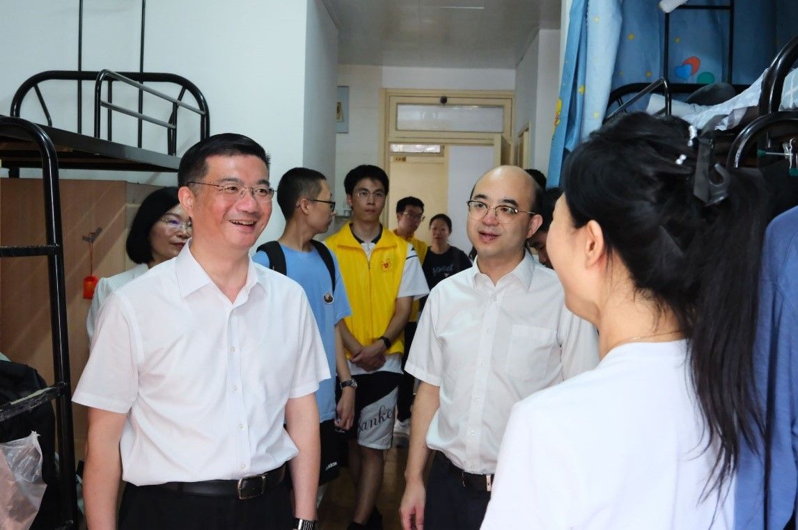 In the freshman dormitory building, Wu Zhengyi had a heart-to-heart conversation with students and parents from different provinces, majors, and ethnic minorities, carefully inquiring about their living and learning needs after enrollment. He particularly cared about the students who are in need, as well as those who participated in the school's Strength-building Camp and the freshman backbone camp. He encouraged everyone to be firm in their ideals and beliefs from the first day of enrollment, study hard, improve their skills, consciously regard the mission of serving the country and the people as the highest pursuit in life, and climb high peaks. He also encouraged colleagues to actively integrate into the collective, unite and love each other, help each other, constantly improve personal qualities in professional learning and social practice, and strive to become outstanding medical talents who are both virtuous and talented and can bear the great responsibility of national rejuvenation.