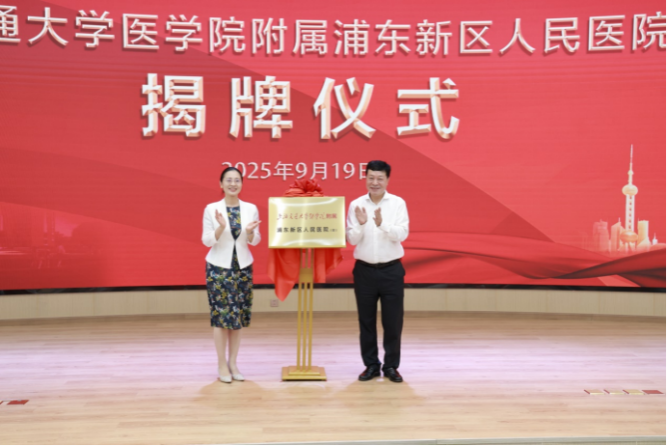Since 2021, Pudong District and SJTUSM have been exploring cooperation and actively advancing the process of establishing Pudong People’s Hospital as an affiliated hospital. On September 11, 2025, Pudong District and SJTUSM signed an agreement to deepen district-university cooperation. The unveiling of the hospital today is a vivid practice of this joint effort, and will help Pudong People’s Hospital grow into a high-level regional medical center.