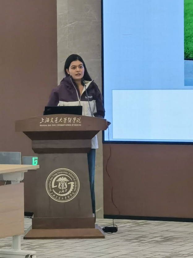 A first-year graduate student from Nepal shared her personal experiences of studying and living at SJTUSM. Drawing on his own journey, he offered practical advice to prospective students on coursework, research practice, and cross-cultural exchange. Her sincere and engaging sharing was met with warm applause from the audience.