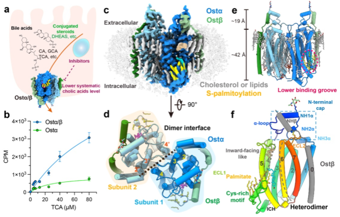 The present study systematically reveals the structural basis and functional mode of Ostα/β from both structural and mechanistic perspectives. At atomic resolution, it fills in a long-missing and critical link in the enterohepatic circulation—bile acid efflux—providing definitive answers to a problem that has perplexed the field for years, and offering important insights for the precise intervention of related diseases.