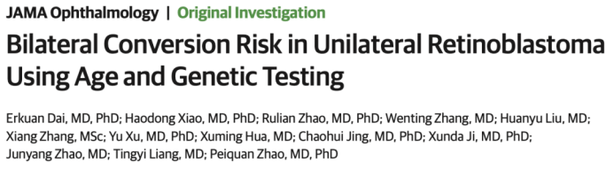Recently, the research team led by Professor Zhao Peiquan from the Department of Ophthalmology at Xinhua Hospital, an affiliated hospital ofSJTUSM, published a significant study titled “Bilateral Conversion Risk in Unilateral Retinoblastoma Using Age and Genetic Testing” online in the prestigious journalJAMA Ophthalmology. The study systematically evaluates the risk of bilateral conversion in children with unilateral retinoblastoma, providing important evidence for clinical precision follow-up and stratified management.