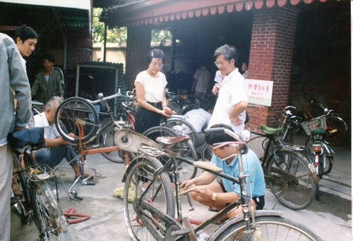 1、1992年9月,庆祝“第八届教师节”活动,修建科的老师为教工义务修理自行车。中间站立的女老师现在在_________部门工会?