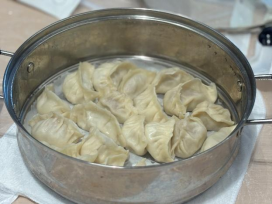 一按一捏之间,形似月牙、饱满精致的蒸饺悄然成型,整齐排列如精美艺术品,活动现场洋溢着欢声笑语。