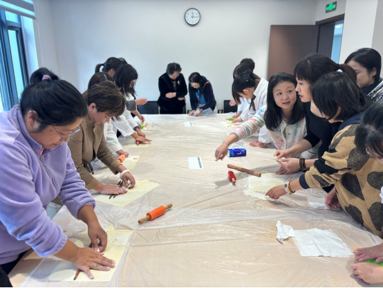 进入实践环节,揉面、擀皮、包馅、捏合等步骤看似简单却考验手上功夫。在面点师与工作人员的耐心指导下,教职工们逐渐掌握技巧。
