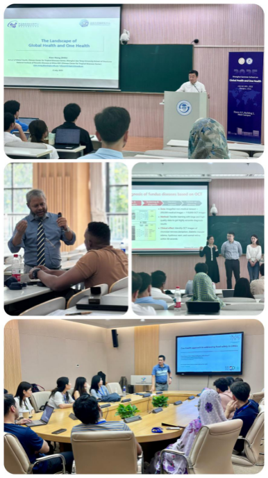 暑期学校特邀中国工程院院士、上海交通大学医学院院长范先群教授团队、全球健康学院周晓农教授团队,古巴科学院院士María Guadalupe Guzmán Tirado,孟加拉国科学院(BAS)院士Md Tanvir Rahman,全球基金会(The Global Fund)评估与影响力高级专员赵金扣,世界卫生组织西太区技术官员Jessica Kayamori Lopes,以及来自瑞典、巴西、英国、澳大利亚、越南等国家的知名专家学者授课。课程内容涵盖全球健康安全、“全健康”政策评估、人畜共患病防控、抗生素耐药应对、气候变化适应策略、人工智能在健康系统中的应用等热点议题,为学员提供了跨学科、跨文化的深度交流机会。