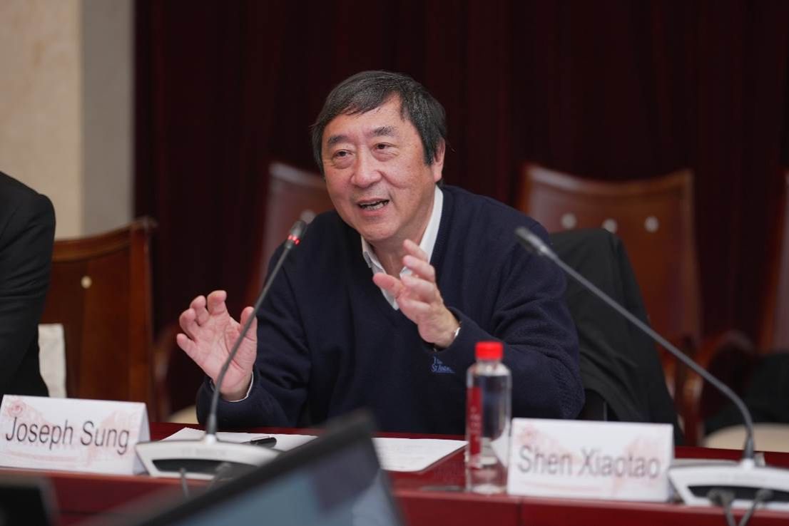 沈祖尧对交大医学院的热情接待表示衷心感谢,并对交大医学院近年来取得的跨越式发展成就给予了高度评价。他表示,南洋理工大学医学院作为一所年轻的、充满活力的学院,始终致力于通过创新教育模式与前沿科学研究应对全球健康议题。沈祖尧指出,上海交通大学医学院在临床医学、基础研究及医学教育改革方面的雄厚实力与丰富经验,与南洋理工大学在工程科技、人工智能、数据科学等领域的领先优势具有高度的互补性。他期待双方能够在前沿交叉学科建设、复合型人才培养、重大科研项目攻关等方面实现深度协同,共同探索面向未来的医学教育新模式。