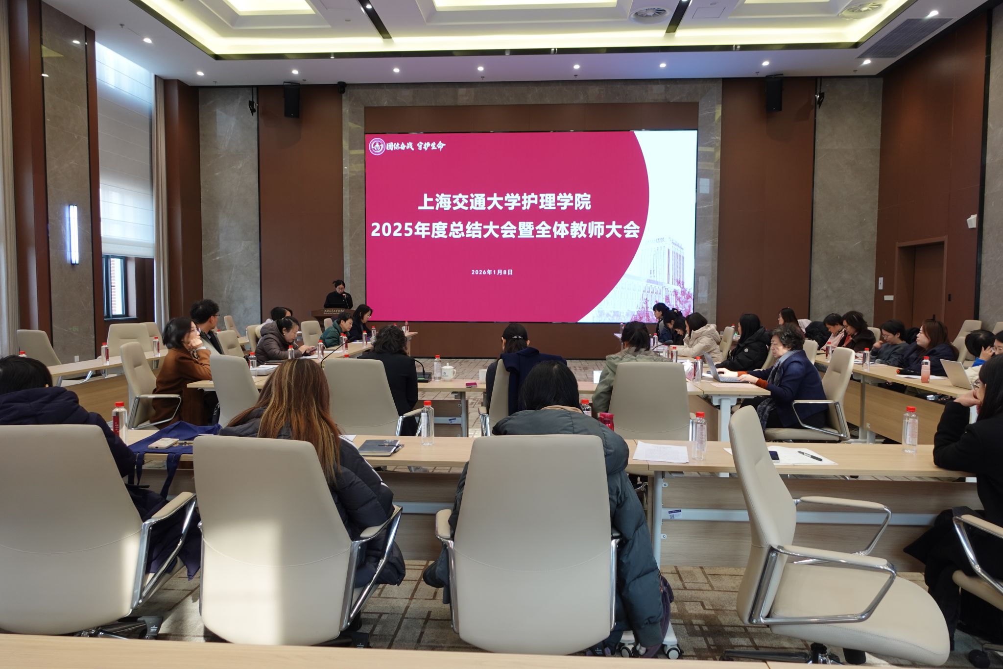 岁序更替,华章日新。为全面总结2025年各项工作成效,表彰先进典型,部署后续重点任务,护理学院于2026年1月8日上午在彤程大讲堂辅楼302方形会议室隆重召开2025年度总结大会暨全体教师会议。学院领导班子成员与全体教师齐聚一堂,共话过往成就,共绘发展蓝图。会议由党政办公室主任祝宇桐主持。会议伊始,护理学院院长李敏作年度重点工作总结报告。汇报中,李敏院长聚焦学科发展与建设成果,系统梳理了学院在学科布局优化、科...