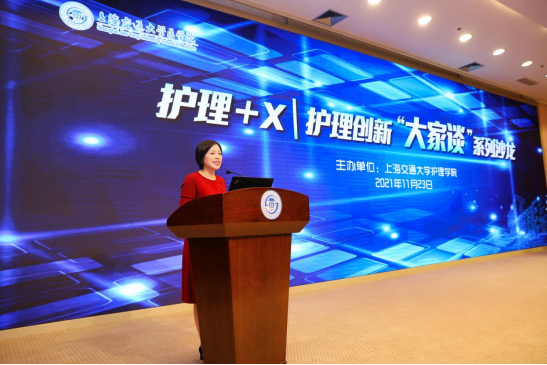 2021年11月23日,上海交通大学护理学院第三次“护理+X”护理创新“大家谈”沙龙活动在医学院懿德楼2楼报告厅举行。会议特邀上海交通大学附属儿童医院院长于广军、复旦大学护理学院袁长蓉教授、上海交通大学设计学院副院长韩挺、上海交通大学计算机科学与工程系长聘教授吕宝粮,作为嘉宾做主题报告和经验分享。护理学院师生60余名线下参会,此外各附属医院护理同仁2200余名在线上共赴思想盛宴。