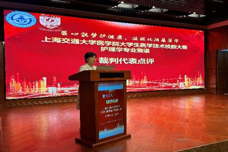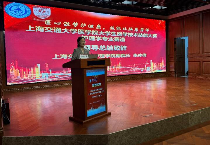 最后,朱冰倩副院长作总结致辞。她充分肯定了本次活动的组织成效与选手们的精彩表现,对全体评委、工作人员的辛勤付出表示感谢。她寄语广大交医护理专业学生,要以此次技能竞赛为新起点,夯实理论基础、提升实践能力,坚守医者初心,厚植人文情怀,努力成长为高素质、专业化的护理人才,为医疗卫生事业发展贡献青春力量。