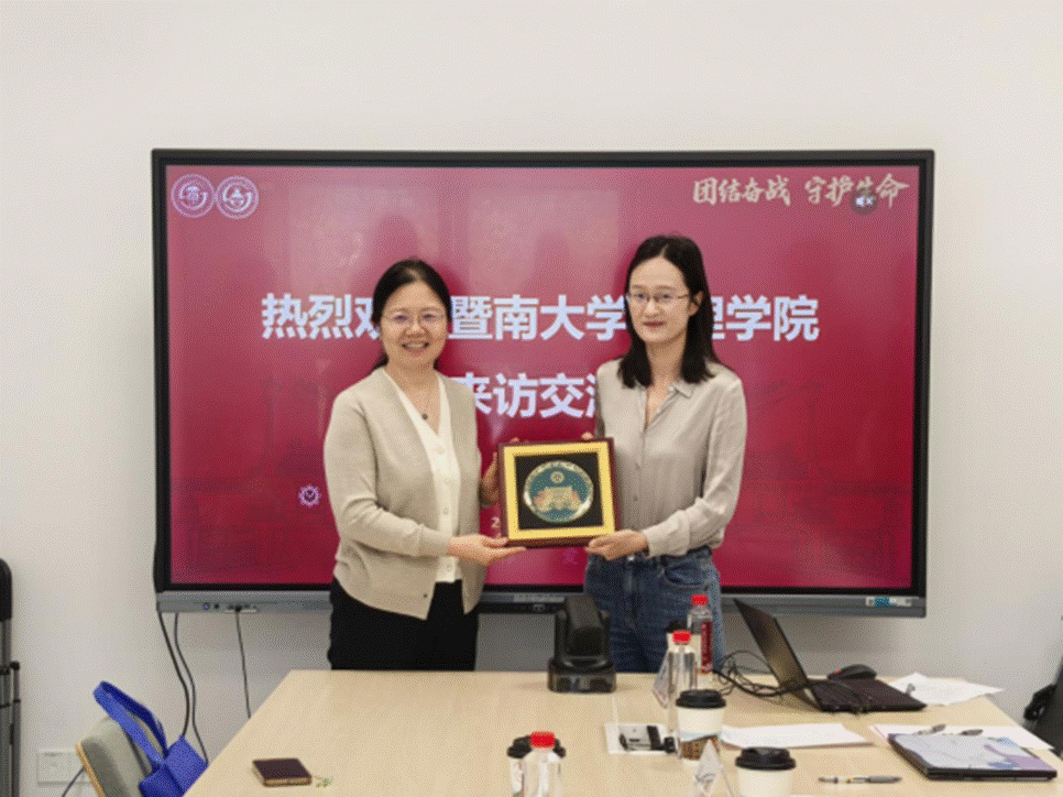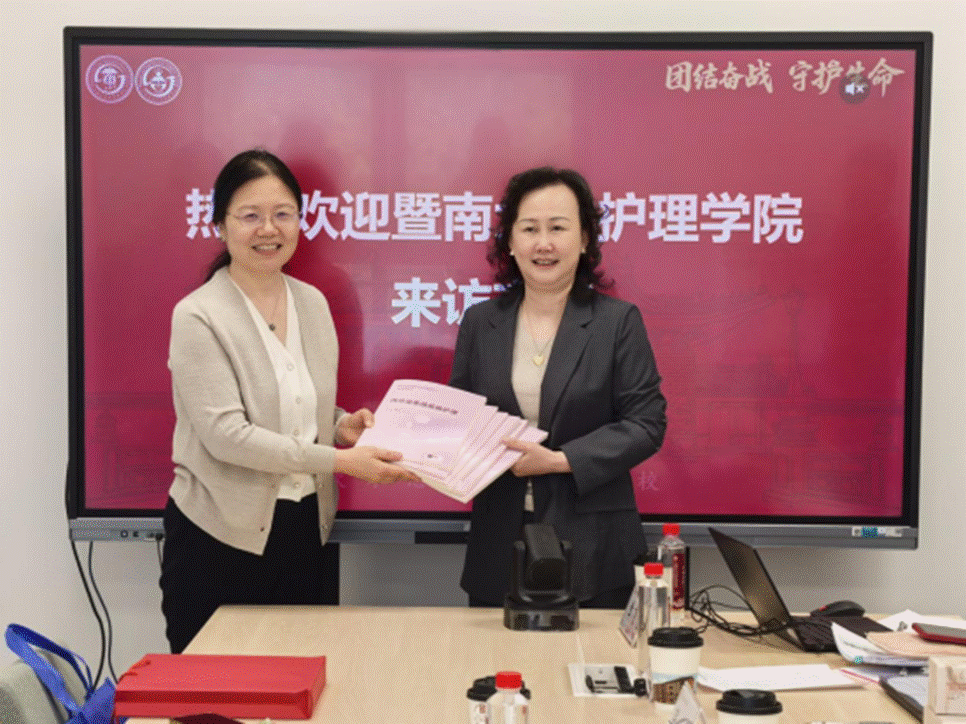 交流尾声,双方互赠纪念礼品。暨南大学护理学院向我院赠送纪念品,上海交通大学护理学院回赠已出版的器官系统整合系列教材,以书为媒、以礼传情,进一步深化两院友谊。