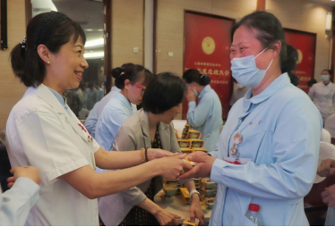 护理部施忠英主任、陶凤英副主任向各科室护士长赠送贺卡、送上节日祝福。
