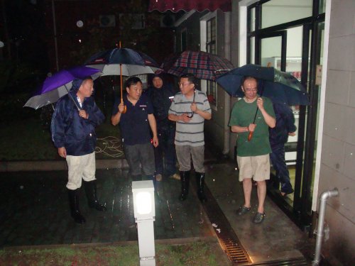 主管后勤的郭院长多次指示,及时关注应急预案的启动情况,并强调务必落实到位、职责到人;后勤总经理董种德亲临第一线,组织、协调并检查各环节工作落实情况;防台防汛抢险队迅速集合,对东、西院屋面下水、水泵排水系统、地面下水道等重要部位作进一步检查,发现问题当场排除和调整;及时发出紧急通知,告知各科室、教研室,下班前关闭门窗、电源,以免造成不必要的损失;组织人员对公用部位的门窗逐层检查,决不遗漏。经过上上下下的不停奔波,抢修队员们早已个个气喘吁吁、汗流浃背,但为确保人员的安全和财产免受损失,大家凝成一股劲,一定要抢在台风之前做好一切准备工作。