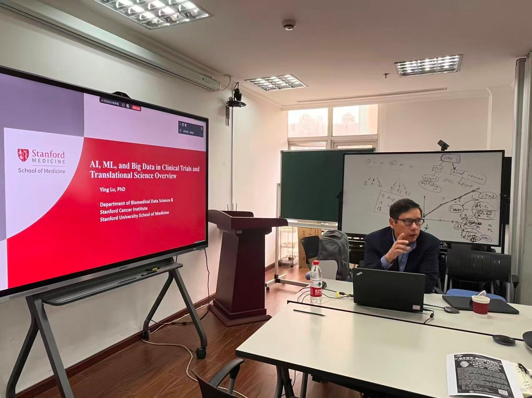 2025年11月24日,斯坦福大学医学院生物医学数据科学系、流行病学与人口健康系的陆盈教授应邀莅临上海交通大学医学院临床医学研究院并做题为“人工智能、机器学习与大数据在临床试验及转化科学中的应用”的学术讲座。讲座中,陆盈教授深入探讨了人工智能、机器学习与大数据技术如何重塑现代医学研究,特别是在临床试验设计、患者招募、结果预测及真实世界数据应用等方面的创新实践。
