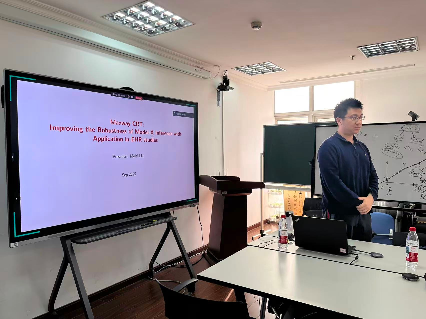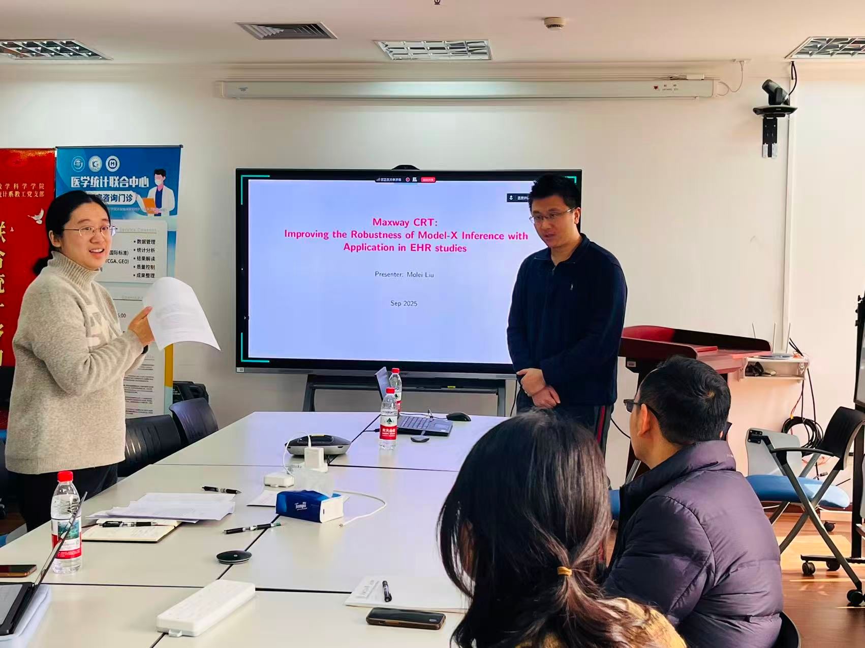 2025年11月27日,来自北京大学医学部与国际数学中心双聘研究员刘默雷教授应邀莅临上海交通大学医学院临床研究中心并作题为“Improving Robustness of the Model-X Inference with Application to EHR Studies”的学术报告。刘默雷教授长期聚焦于高维复杂数据推断、数据融合、半监督学习等统计学前沿领域,在生物医学信息学、基因组学等应用领域取得了丰硕成果,他的报告吸引了相关研究领域师生的关注。