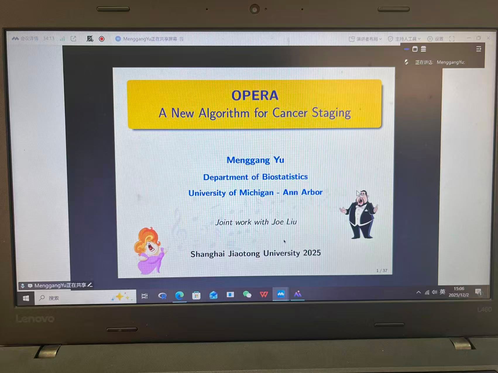12月2日下午,美国密歇根大学公共卫生学院生物统计学系余萌钢教授在线参加上海交通大学医学院临床医学研究院主办的“聚菁荟萃”临床研究论坛并作题为“OPERA: A New Algorithm for Cancer Staging and Risk Stratification based on Partially Ordered Prognostic Factors”的学术报告。余教授是美国统计学会(ASA)会士,在临床试验设计与分析、观察性研究与真实世界证据、精准医疗等领域具有深厚的方法学研究积累,与多学科团队合作推动癌症防治、慢性病管理、医疗系统优化等重大健康议题的研究与实践。本次报告聚焦肿瘤分期与风险分层,为临床科研工作者提供了一种新方法、新视野。