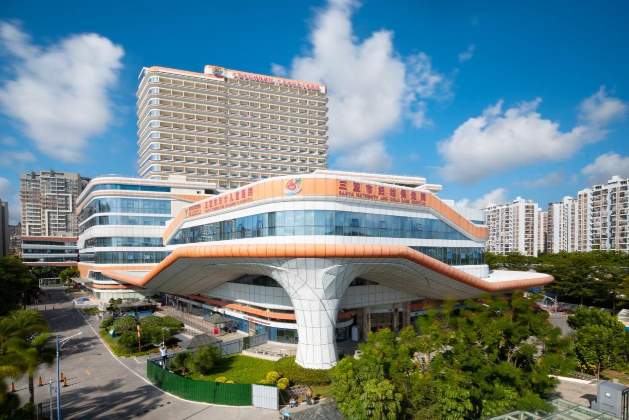上海交通大学医学院附属上海儿童医学中心海南医院以上海交通大学医学院附属上海儿童医学中心为输出医院、三亚市妇幼保健院为依托医院,在沪琼两地六年合作的良好基础上(三亚市政府与上海儿童医学中心分别于2017年和2021年签署两轮沪琼合作办医协议),于2022年5月7日获批成为全国第三批国家区域医疗中心建设单位。同年11月20日,海南省人民政府与上海儿童医学中心签署国家区域医疗中心合作共建协议;2023年6月,医院正式更名为“上海交通大学医学院附属上海儿童医学中心海南医院”,同时加挂三亚市妇幼保健院、三亚市妇女儿童医院牌子。医院总建筑面积约21万平方米,规划编制床位1000张。其中,一期工程于2018年底正式开业运营;二期工程于2022年10月正式启动建设,截至2025年下半年,外立面工程基本完工,项目整体建设成效显著。