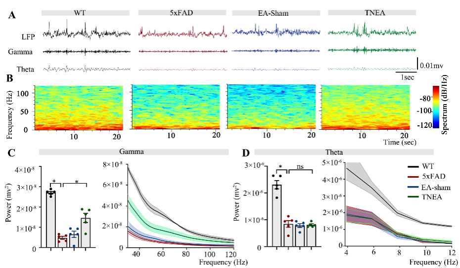 近日,上海交通大学医学院源申康复研究院单春雷教授联合上海中医药大学中西医结合学院王德恒教授团队在Advanced Science上发表了题为“TNEA Regulates Hippocampal Oscillation by Improving Inhibitory Synaptic Plasticity to Ameliorates Cognitive Impairment in Alzheimer's Disease”的研究论文。首次从神经电活动与微环路调控的角度,系统揭示了“益智三针”(three-needle electroacupuncture, TNEA)改善AD认知功能的新机制。该研究首次从神经电活动与微环路调控的角度,系统揭示了TNEA改善AD认知功能的新机制。研究发现,在5xFAD模型小鼠中,TNEA不仅可通过此前报道的自噬通路发挥作用,还能通过精准调节特定神经电活动,修复大脑中“兴奋‑抑制”平衡障碍,从而发挥治疗效应。该发现不仅深化了对针灸在中枢系统中作用机制的理解,也强有力地表明TNEA是一种能够精准调控关键脑节律、具有潜力的辅助性治疗策略,为AD的非药物干预开辟了新的研究方向。