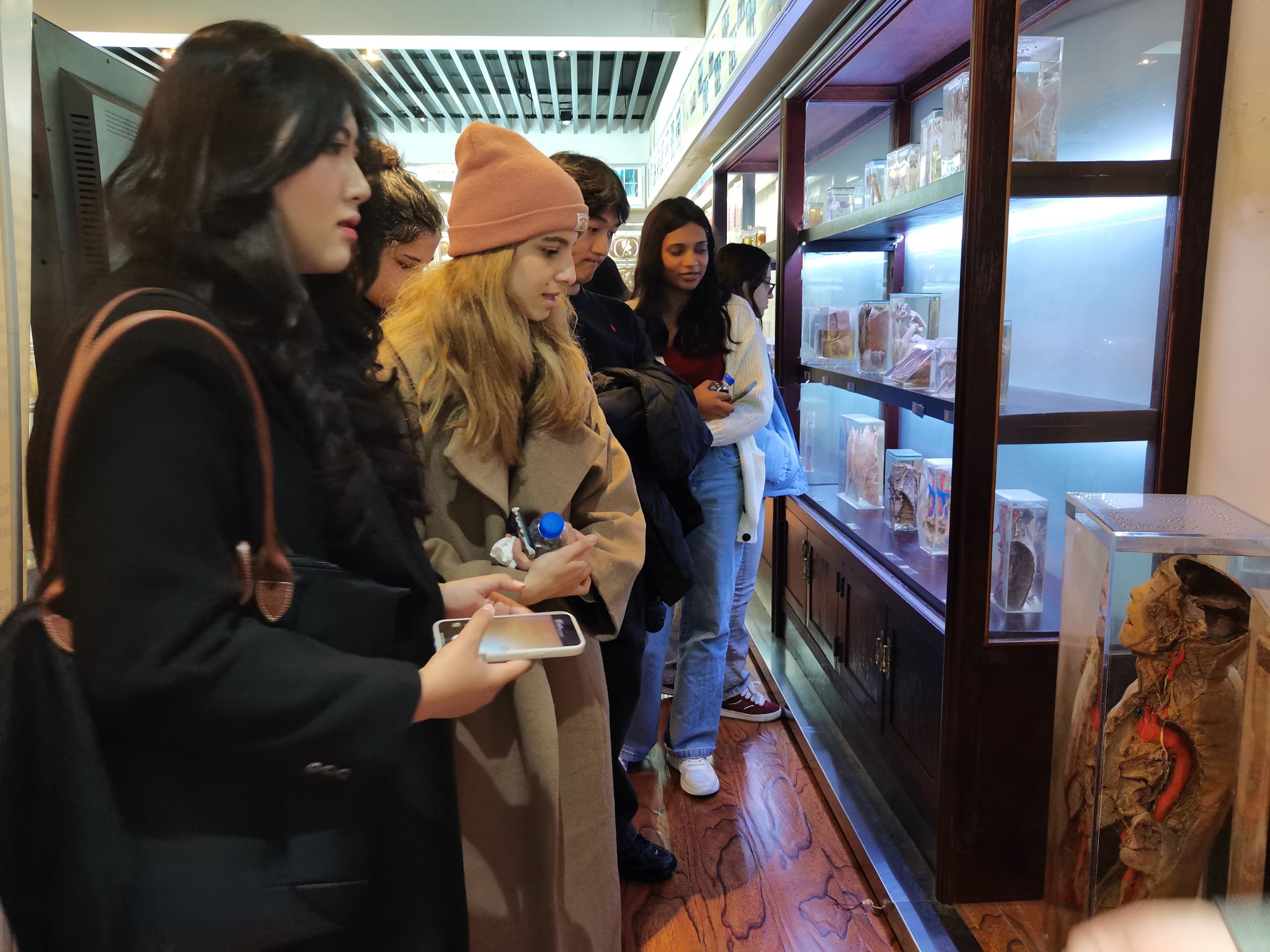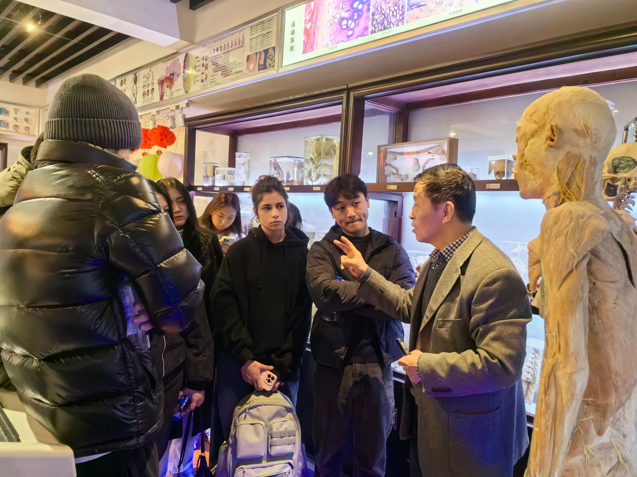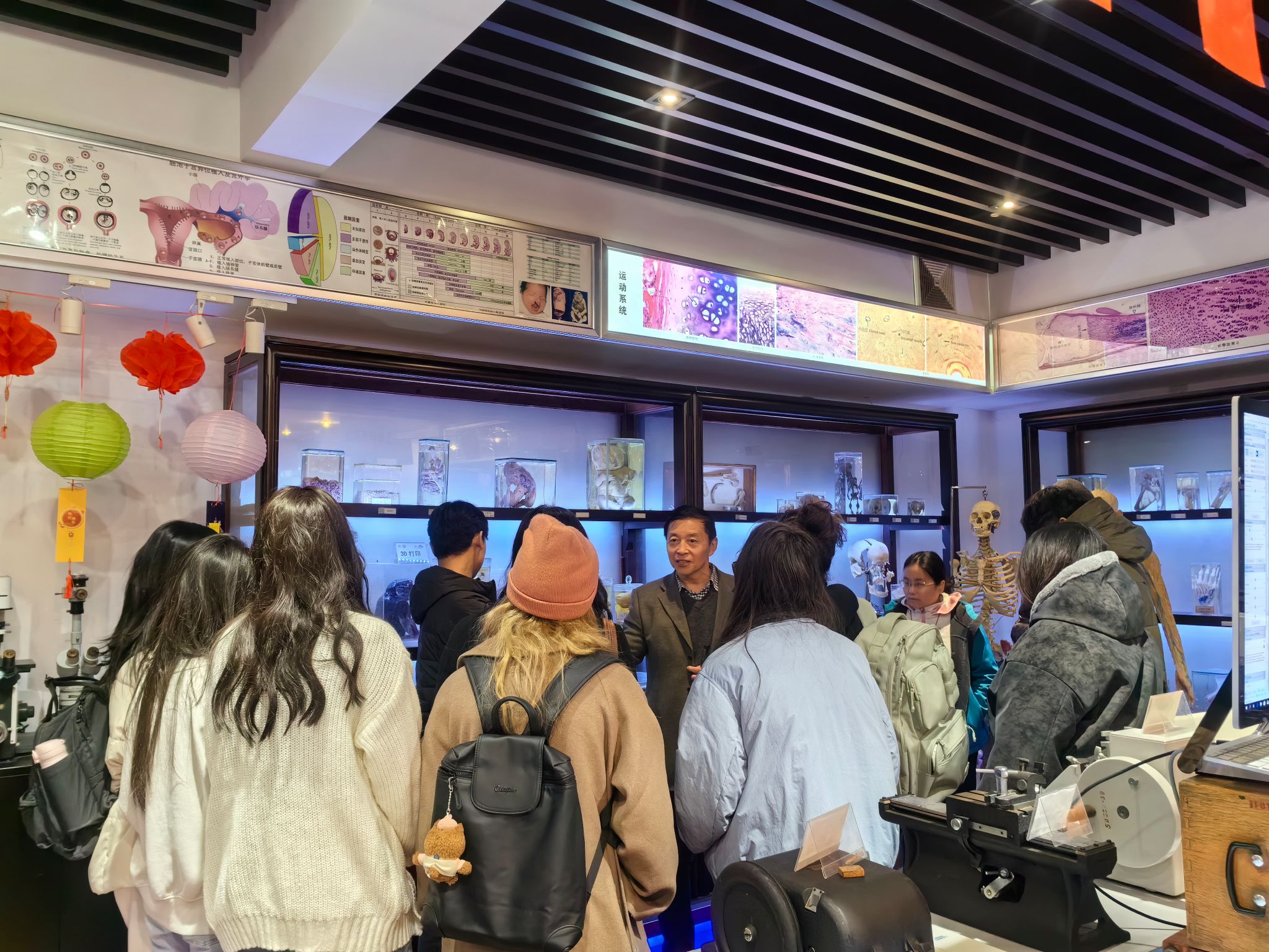作为沪上顶尖的医学教育基地,复旦大学人体科学馆以其丰富的馆藏资源和先进的展陈技术闻名。本次参观学习由复旦大学基础医学院人体解剖与组织胚胎学系专家张红旗教授全程英文讲解,为国际医学生搭建起跨越校际的学术桥梁。