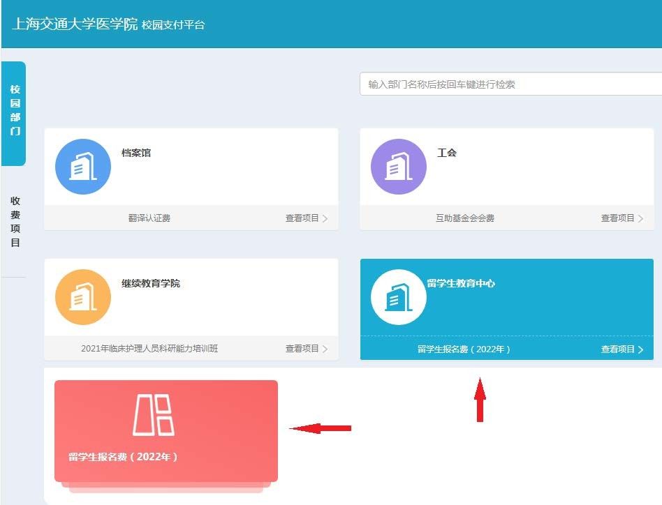 ①点击“留学生教育中心”,点击“留学生报名费”。(见图 4)