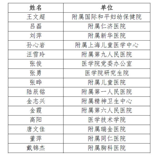 如对以上拟推荐名单有异议,请于12月15日前以书面形式向医学院党委教师工作部反馈。公示期满后,医学院将正式提交推荐名单至上海交通大学参加校级评审。