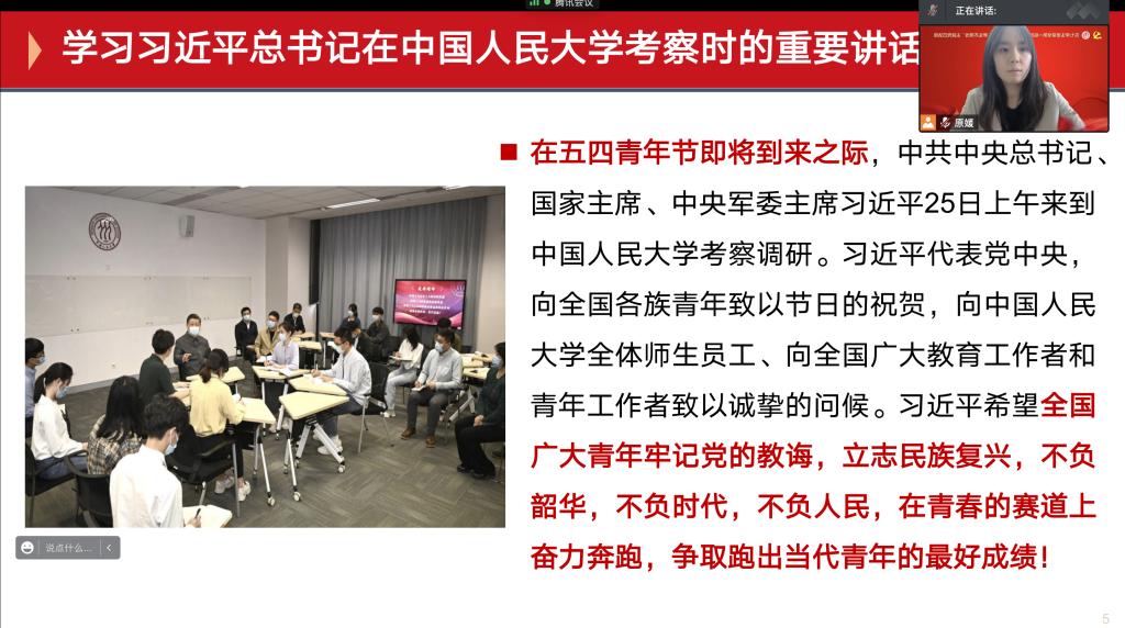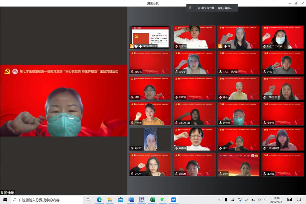 在五四青年节即将到来之际,5月2日晚,东七学生寝室楼第一临时党支部举行了“同心战疫情,师生齐担当”主题党日活动,东七学生寝室楼临时党总支书记游佳琳出席活动。本次活动由东七学生寝室楼第一临时党支部书记原媛主持。