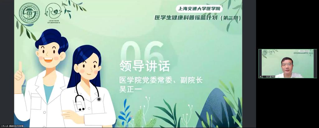 7月21日下午,上海交通大学医学院“医学生健康科普摇篮计划”(以下简称“摇篮计划”)第二期启动仪式暨健康科普导论课程于线上顺利举行。医学院党委常委、副院长吴正一,市卫健委团委书记何江江,公共卫生学院院长王慧,医学院团委书记游佳琳出席启动仪式。第二期“摇篮计划”健康科普导师及全体学员近300人线上参与了本次活动。启动仪式由医学院学生联合会执行主席、2016级临床医学八年制专业学生张海扬主持。