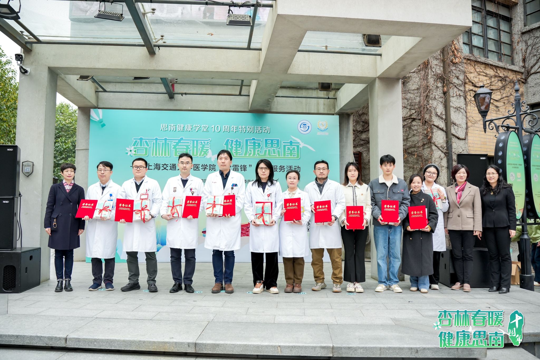 “杏林春暖,健康思南”学雷锋义诊服务是“思南健康学堂”项目的一项重要活动,每年三月学雷锋月,在思南公馆共赴一场健康之约,于交医、于思南,于市民,已成为一种共识和默契。现场全体义诊医生和志愿者们重温《中国青年志愿者誓词》,用洪亮的宣誓表态,必当传承弘扬雷锋精神,主动承担社会责任,做有理想、敢担当、能吃苦、肯奋斗的新时代好青年。
