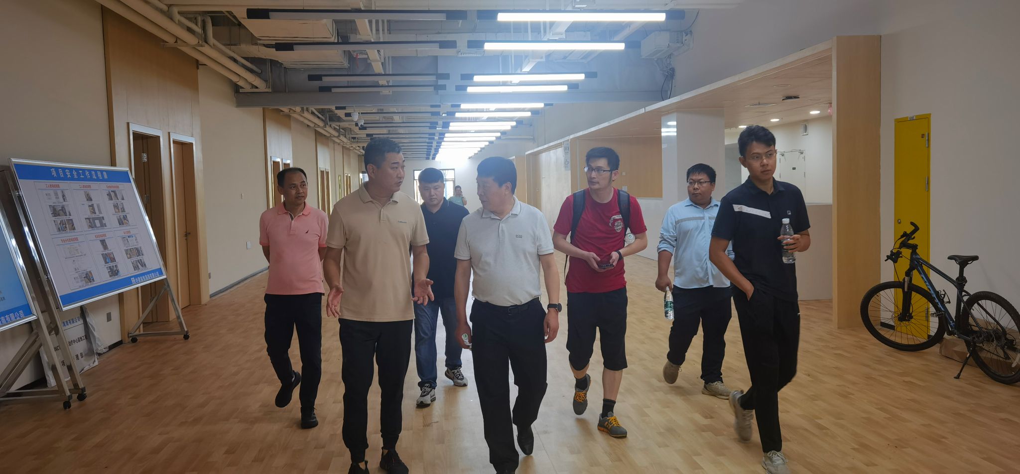 会后,方勇主任带队走访并仔细勘察了施工现场,对总体建设工程表示满意,同时也对科研楼门厅和生活区大门提出了具体整改要求。