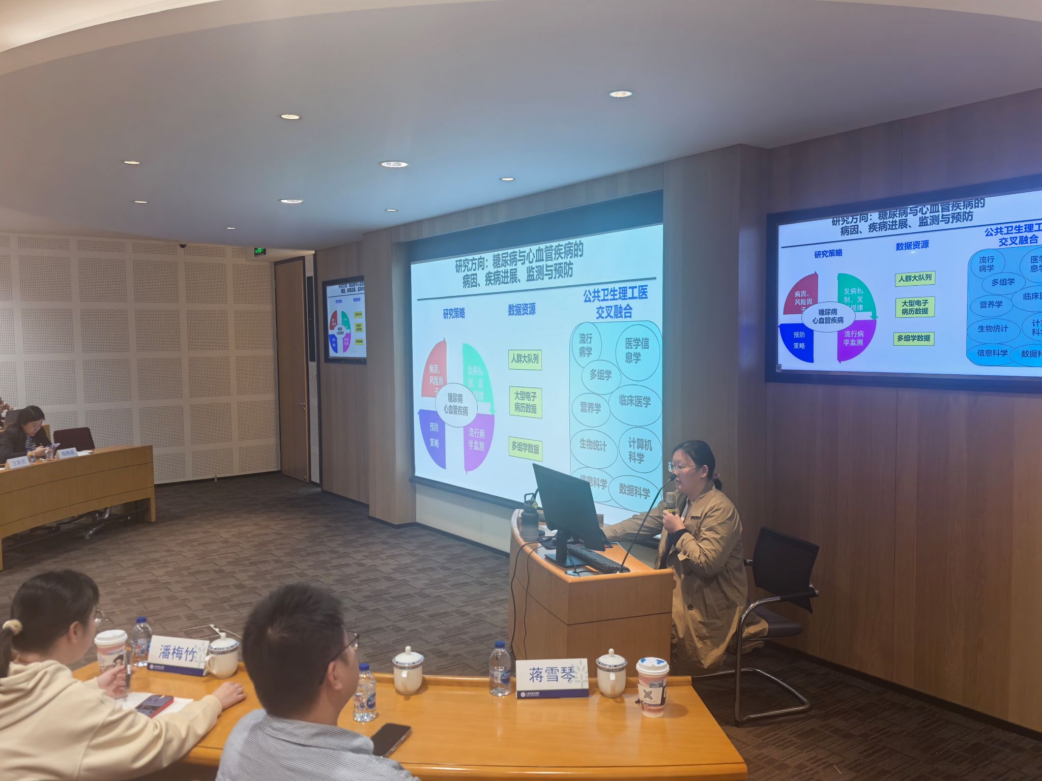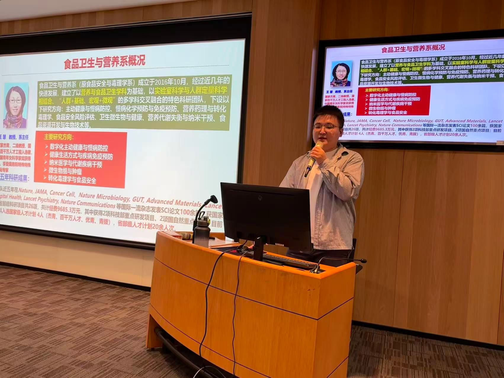 流行病学与生物统计学系冯楠楠老师展示了如何运用生物信息学、人工智能及多组学技术应对慢性病防控等公共卫生挑战。社区健康与行为医学系李斯斯与张智若老师介绍了该系在智慧健康、社区行为干预等领域的研究成果与教学特色,并分享了学生的学习体会。妇女儿童健康系项密老师以“医防融合”为核心,阐述了团队在妇儿全生命周期健康领域的交叉研究及“手把手”的人才培养模式。社会医学与卫生事业管理系吕奕鹏老师从政策研究、卫生经济等角度出发,鼓励学生在交叉融合中发掘科研灵感,致力于开展“有光的研究”。食品卫生与营养系杨阳老师介绍了团队在慢病营养、食品安全等领域的多学科交叉研究进展。环境与健康系汪一心老师阐述了本学科在环境暴露与健康风险评估方面的关键贡献。